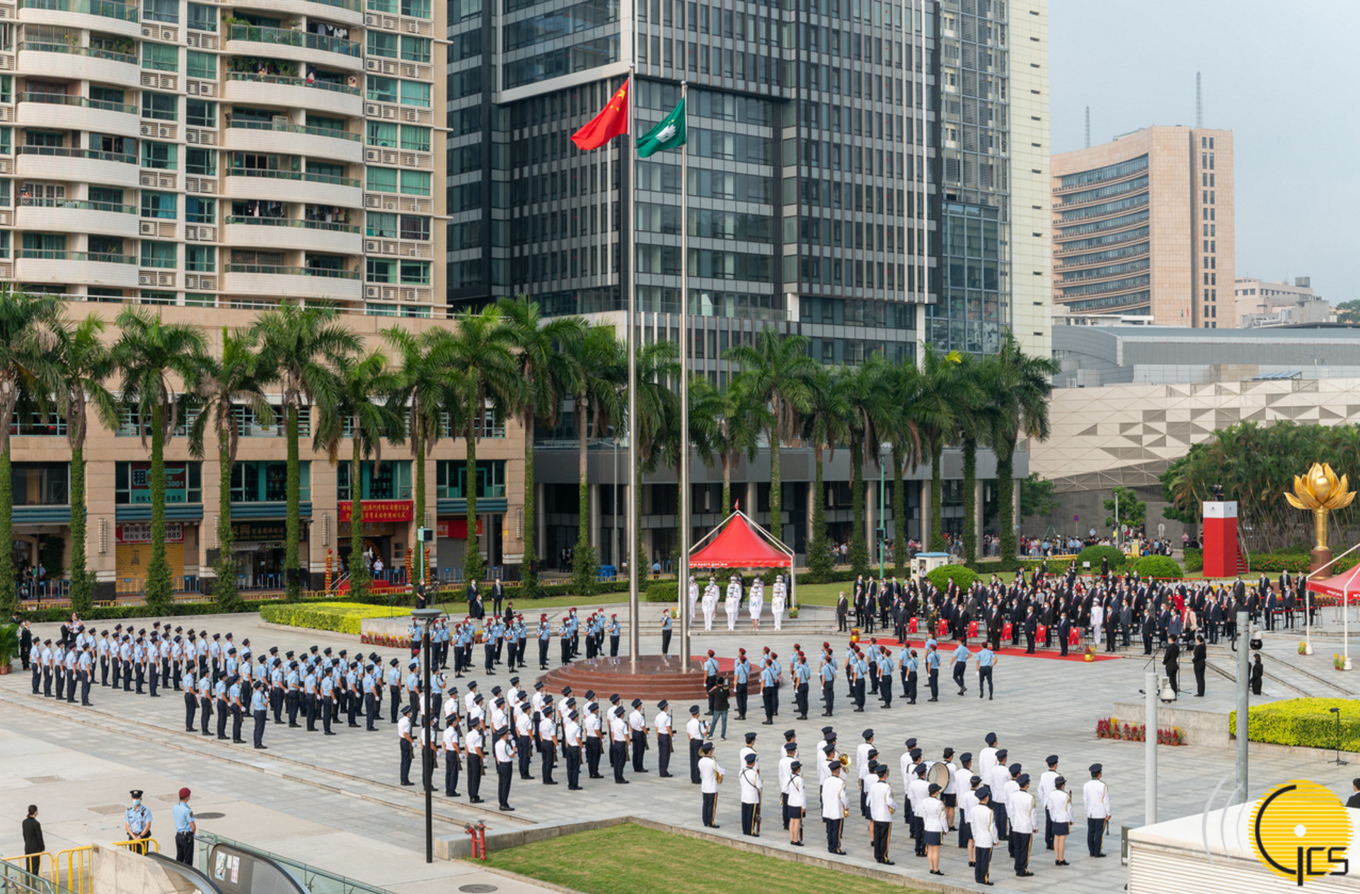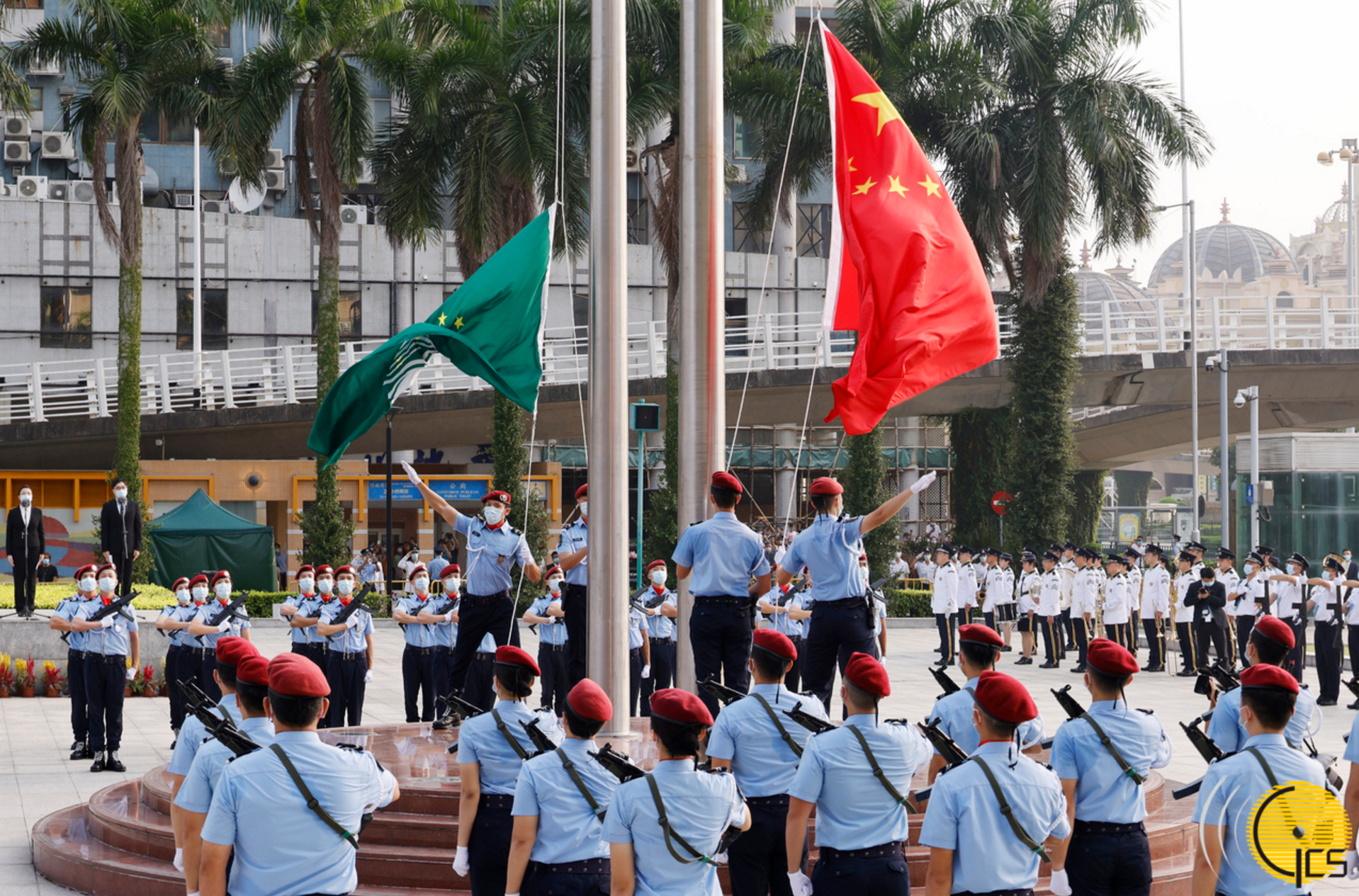 8时整,中央政府驻澳门联络办公室副主任张荣顺、姚坚出席在金莲花广场举行的升旗仪式。张荣顺副主任与澳门特区行政长官贺一诚、外交部驻澳门特派员公署特派员刘显法、驻澳门部队副司令员戴劲松、澳门特区立法会主席高开贤、澳门特区终审法院院长岑浩辉共同担任主礼嘉宾。