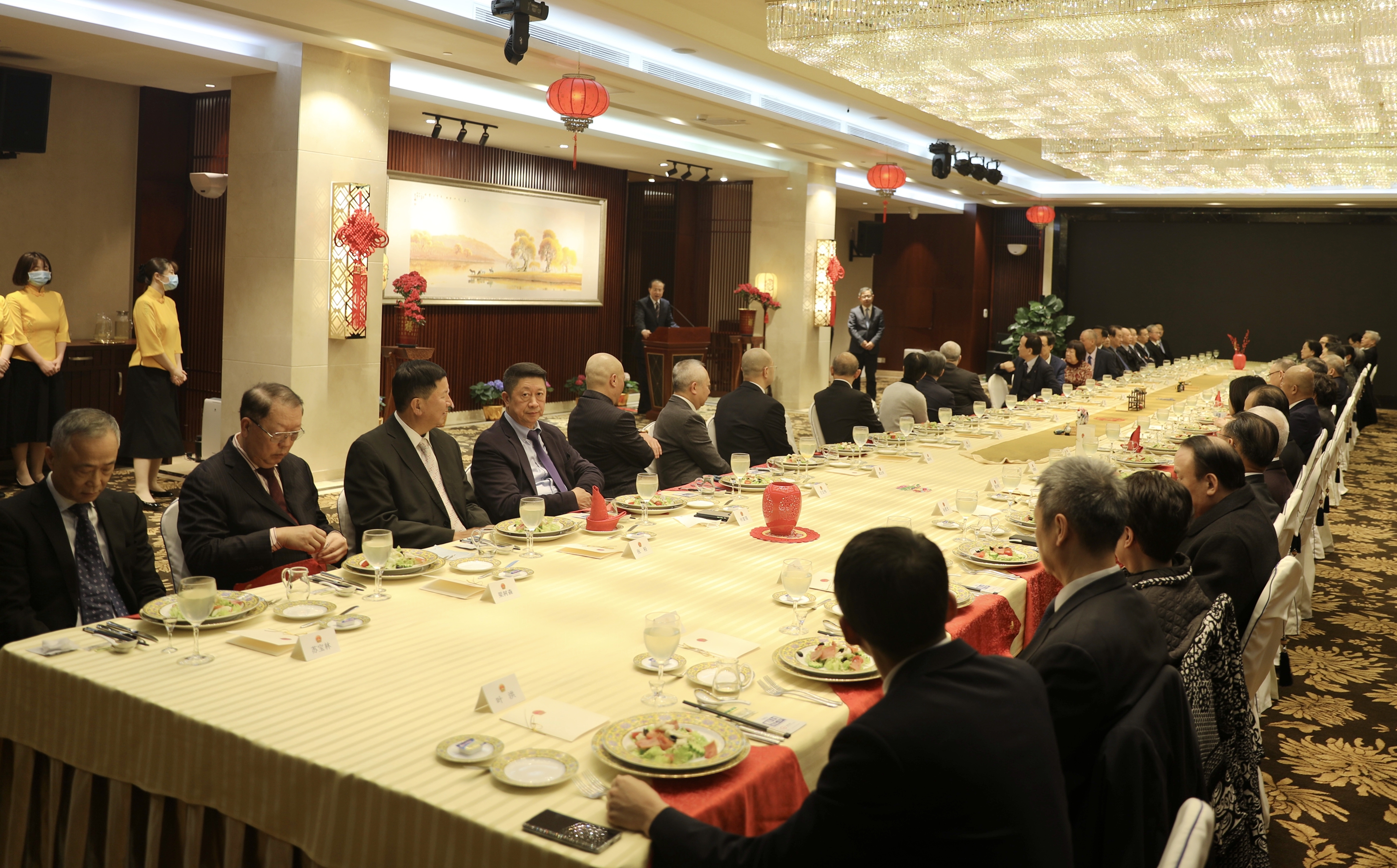 本网讯 2月24日晚,中央政府驻澳门联络办公室主任傅自应在新竹苑与澳门地区全国人大代表、全国政协委员春茗座谈,副主任张荣顺出席。全国政协副主席何厚铧,全国人大代表召集人刘艺良、崔世平、高开贤,全国政协常委廖泽云、梁华等40余名代表委员参加。