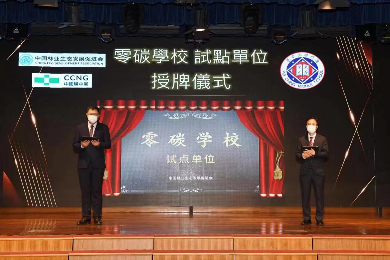 4月28日,全国零碳学校试点单位揭牌仪式在澳门举行。澳门培正中学成为全国首家零碳学校试点单位。中国林业生态发展促进会碳中和发展委员会副秘书长周平出席揭牌仪式,并为学生们分享了应对气候变化的科学知识。