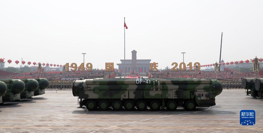 2019年10月1日上午,庆祝中华人民共和国成立70周年大会在北京天安门广场隆重举行。这是东风-41核导弹方队通过天安门广场。新华社记者 袁满 摄