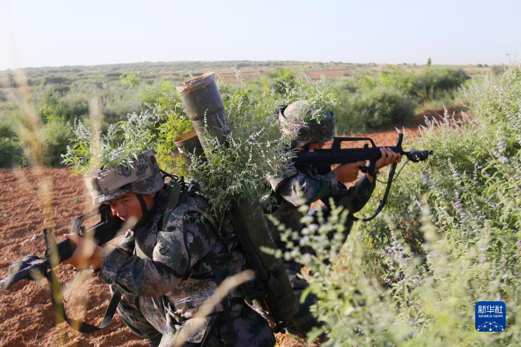 陆军步兵学院在太行腹地开展“淬火·2018”合成营综合战术演练。这是步兵班实施交替掩护前进(2018年6月6日摄)。新华社发(黄春霖 摄)