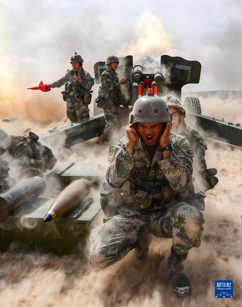 “火力-2017·青铜峡”基地化训练中,红军参演炮兵部队——第71集团军某炮兵旅加榴炮进行昼间实弹射击(2017年9月24日摄)。新华社发(彭希 摄)