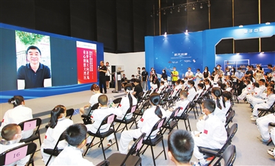英雄航天员刘伯明在航天科普讲座上与珠澳青少年连线交流。 珠海特区报 曾遥 摄