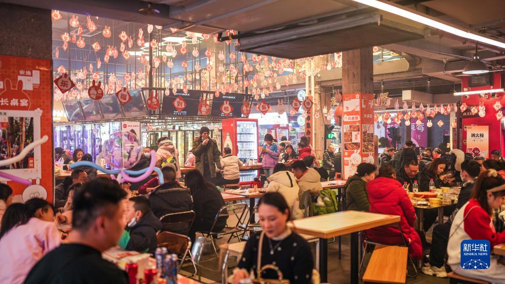 消费者在贵阳市南明区“青云市集”品尝特色美食(1月23日摄)。 新华社记者 陶亮 摄