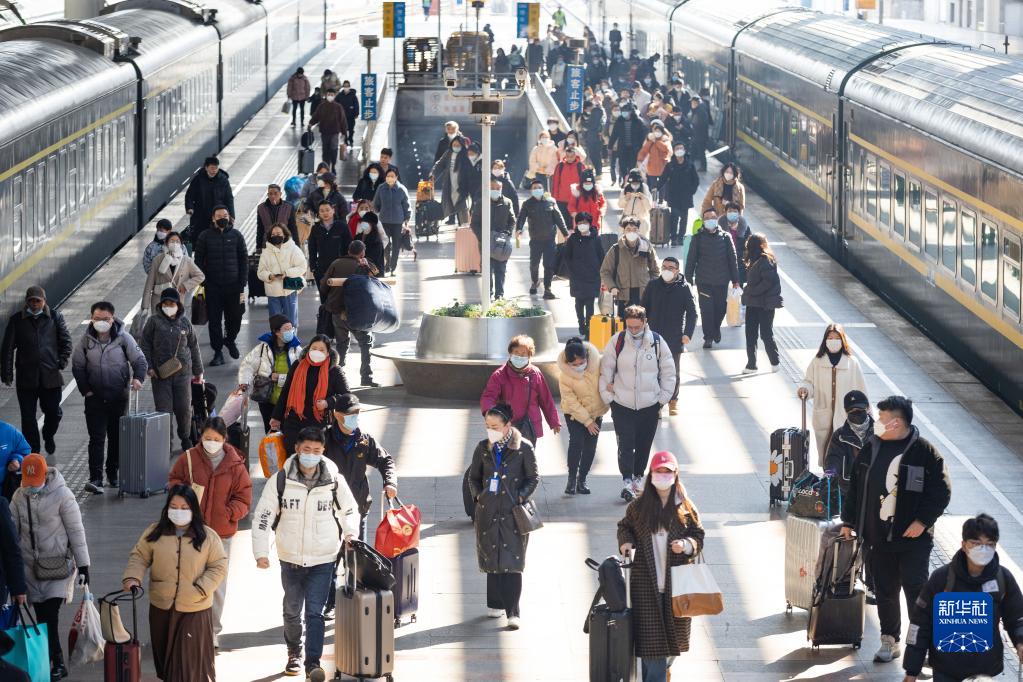 2月15日,刚下车的旅客在南京火车站准备出站。当日,2023年春运迎来最后一天。 新华社发(苏阳摄)