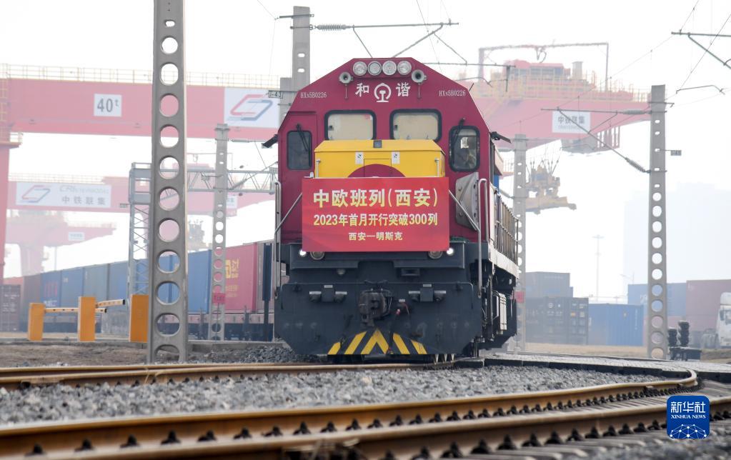 2月1日,X8151次中欧班列从西安国际港站驶出开往明斯克。 新华社记者 李一博 摄