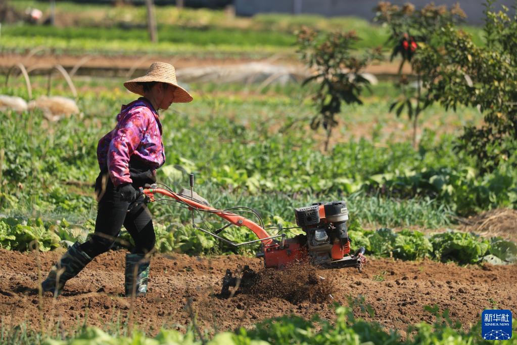 1月31日,在江西省吉安市泰和县澄江镇南门村,农民在田间翻耕整地,准备春播春种。新华社发(邓和平 摄)