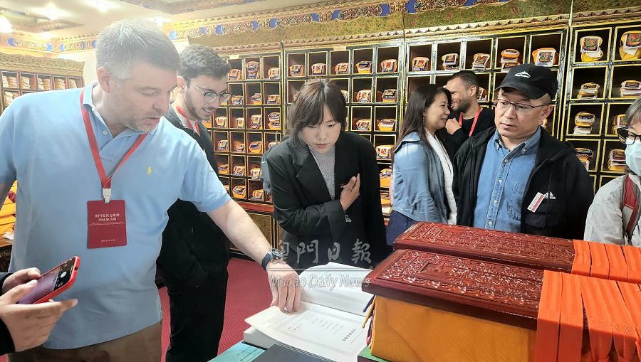 16日,澳门葡英文媒体西藏参访团到访西藏自治区藏医院,了解藏医药历史及发展情况,赞叹藏医药作为中华民族优秀文化的瑰宝,正在国家的支持下在传承中走向世界。