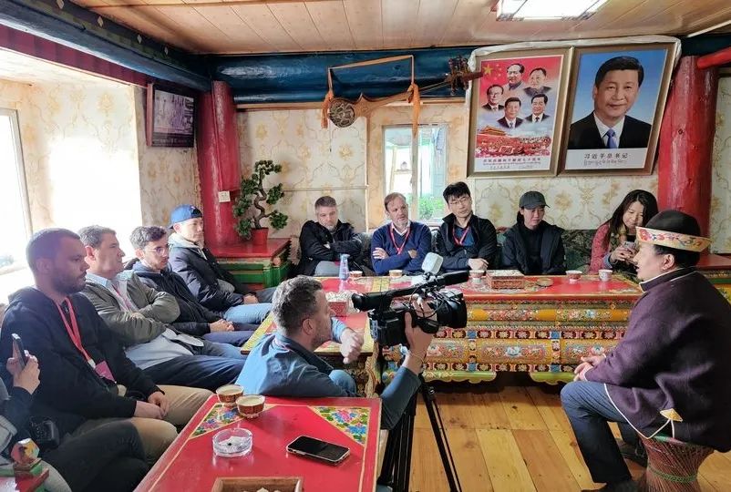 19日,澳门葡英文媒体西藏参访团前往林芝市鲁朗扎西岗村入户参访,了解扎西岗村村容村貌,旅游产业带动群众增收致富等情况。