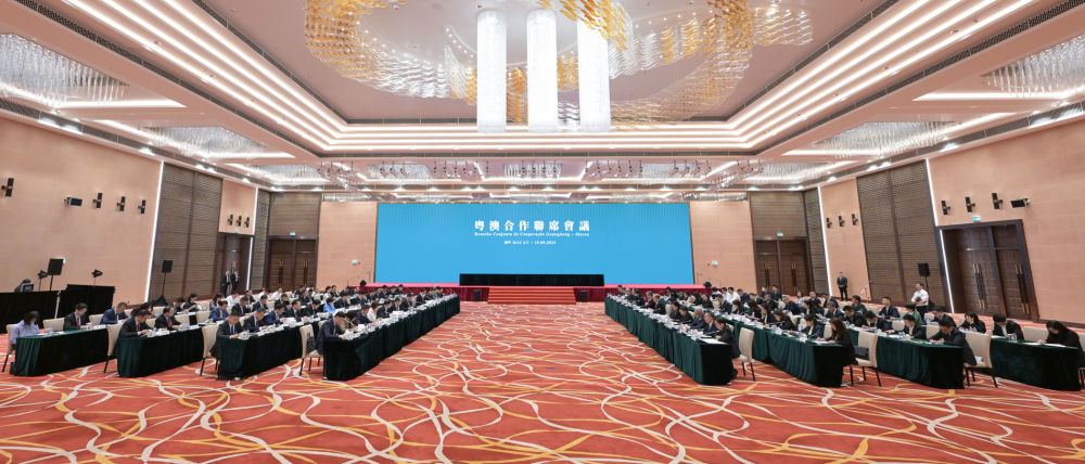 19日拍摄的2023年粤澳合作联席会议现场。新华社发