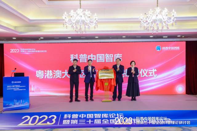 12月6日,由中国科普研究所、广东省科学技术协会、广州市科学技术协会联合组建的“科普中国智库粤港澳大湾区研究中心”,在2023年科普中国智库论坛暨第三十届全国科普理论研讨会开幕式上举行揭牌仪式。中国科普研究所党委书记、所长王挺,广东省科协党组书记成洪波,中国科学院广州分院分党组书记、院长陈广浩,广州市科协党组书记、副主席徐柳共同揭牌。