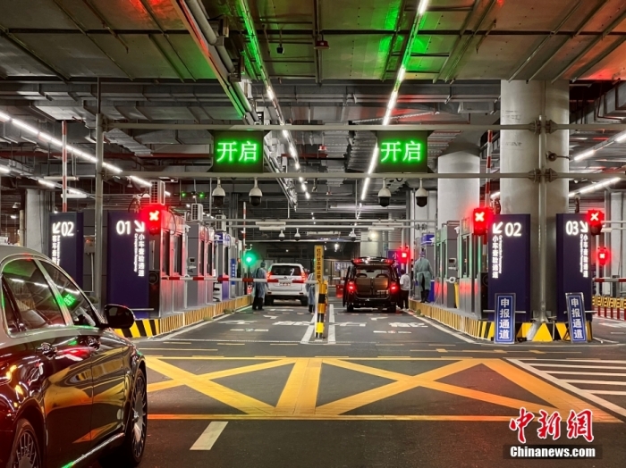 资料图:2023年1月1日是“澳车北上”澳门机动车正式入粤的第一天。当日,首批8辆澳门单牌机动车从港珠澳大桥珠海公路口岸顺利入境。图为广东珠海,澳门单牌车在港珠澳大桥珠海公路口岸排队候检。中新社发 张子恒 摄