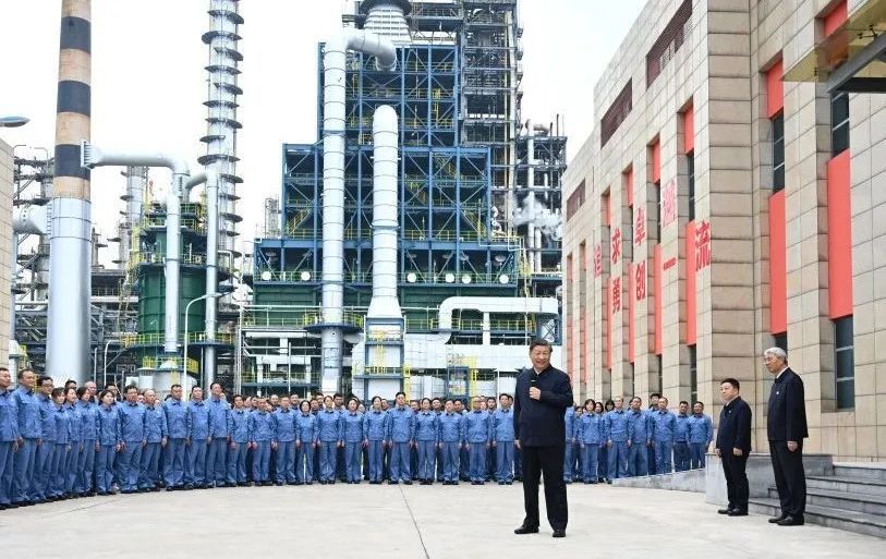 2023年10月10日,习近平总书记在江西中国石化九江分公司考察时,同企业员工亲切交流。