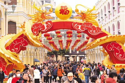 在澳门,春节年俗不仅被完好保存,还得以发扬光大。澳门特区政府文化局有关负责人介绍,今年春节活动主打“文化味”,将呈献“神龙开盛纪 镜海舞霓虹”系列文化活动,并举办多场演出、展览等,让市民和游客在丰富多彩的文化活动中欢度春节。