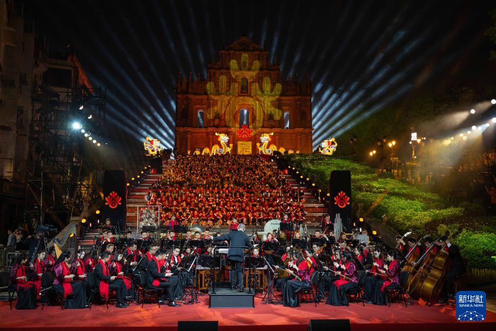 2024年“欢乐春节”启动仪式暨“欢乐春节 春满濠江”音乐会,2月3日晚在澳门大三巴牌坊前广场成功举办。