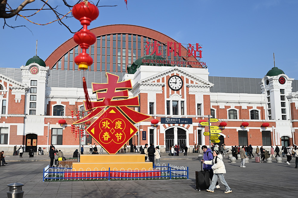 2024年2月17日,沈阳站,人们拉着大大小小的行李箱,踏上了龙年新征程。