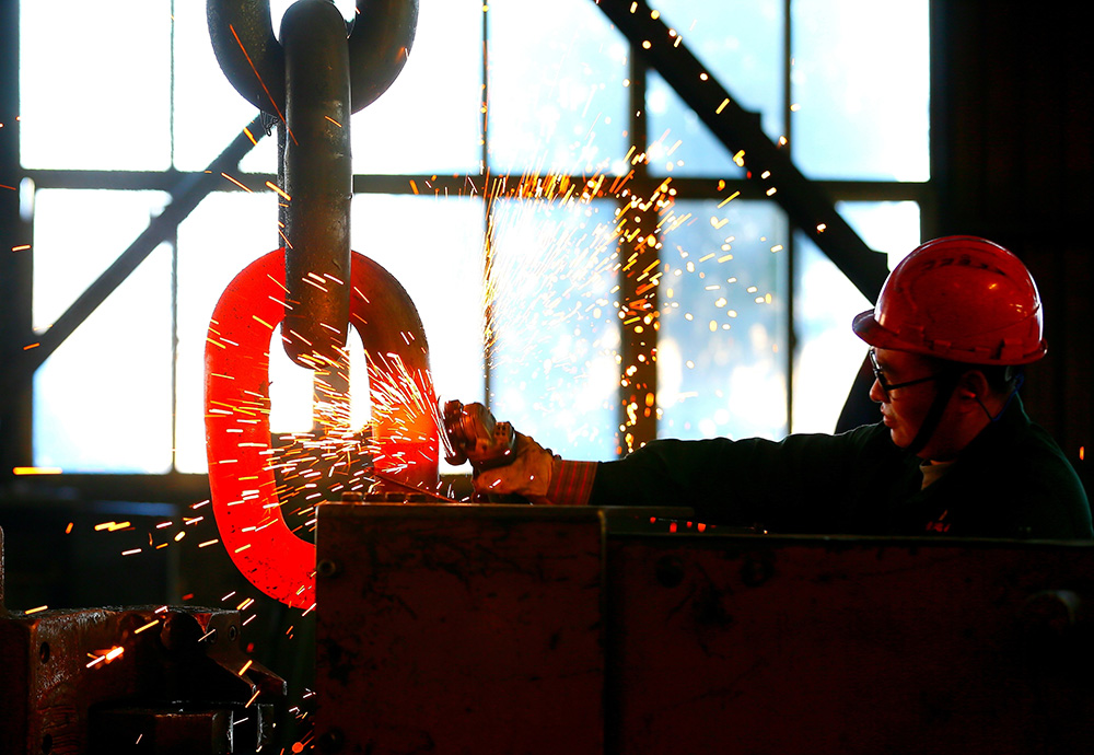 2024年2月17日,青岛市,即墨区灵山街道一家锚链企业,工人正在忙碌。