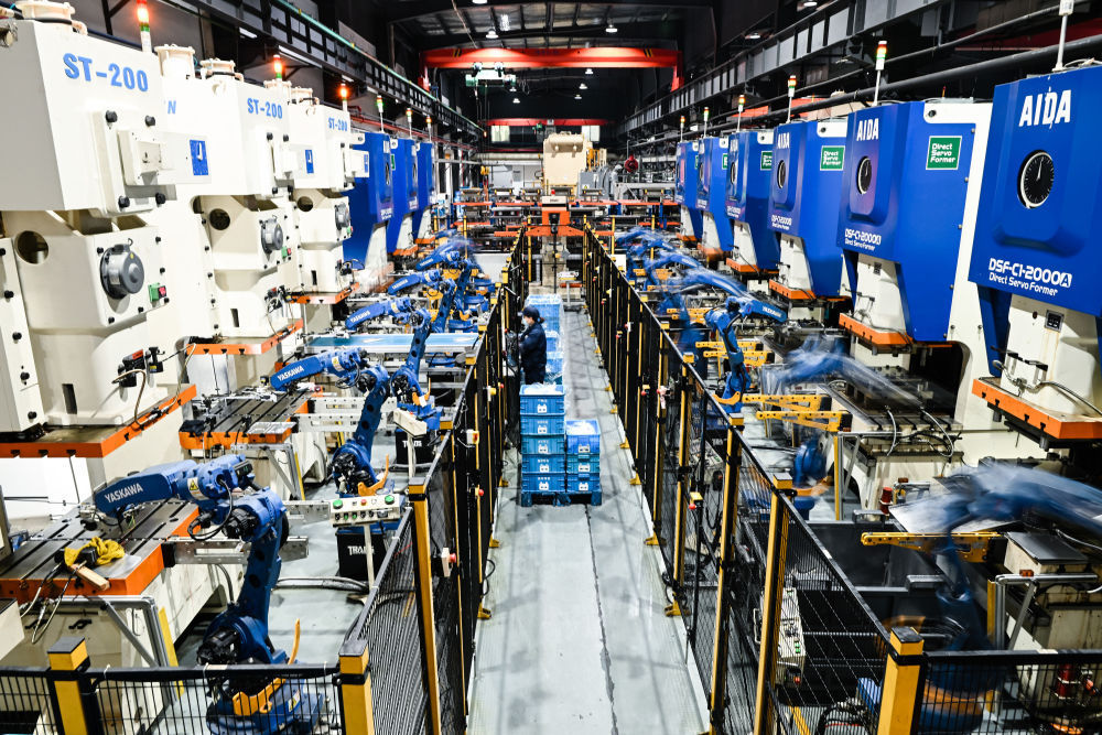 2024年2月28日,在“江苏省专精特新中小企业”无锡微研精工科技有限公司智能生产车间,机械臂在作业。新华社记者 季春鹏 摄