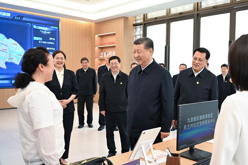 2024年4月22日,习近平总书记来到重庆九龙坡区谢家湾街道民主村社区,察看小区改造和便民服务情况,听取提升基层治理效能、为基层减负情况介绍。