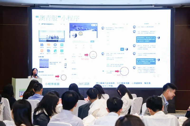 推介会上,澳门青年发展服务中心(下称澳门青服中心)秘书李慧珊详细介绍了澳门青服中心的设立背景,重点打造的学习发展、就业支援、创业之路、职能辅导、两地交流等七大服务板块,以及线上服务平台“澳青服”小程序的功能和特点。通过小程序,澳门青年可以方便地获取各类实习、就业信息,参与线上培训和交流活动,更好地实现自我成长和发展。