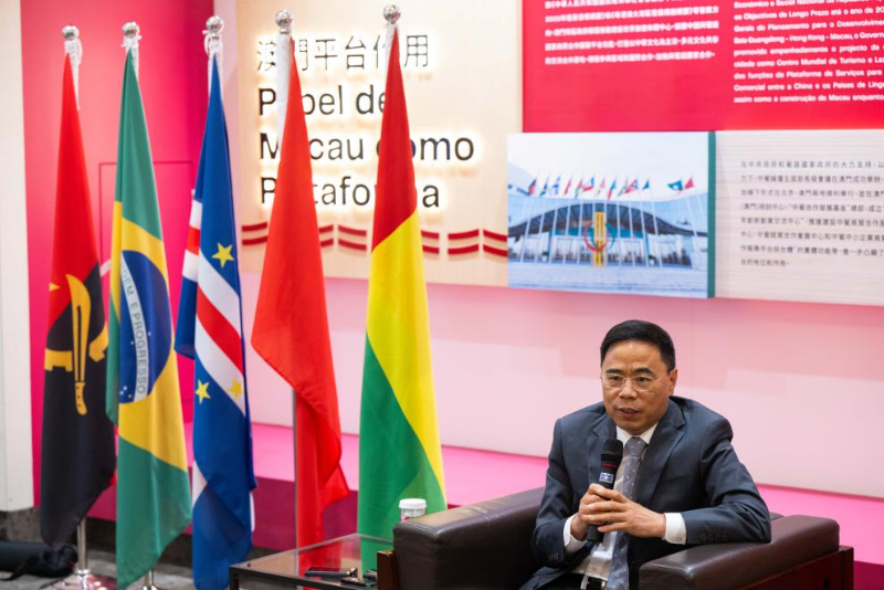 6月16日,中国—葡语国家经贸合作论坛(澳门)常设秘书处秘书长季先峥接受媒体采访。新华社记者 张金加 摄