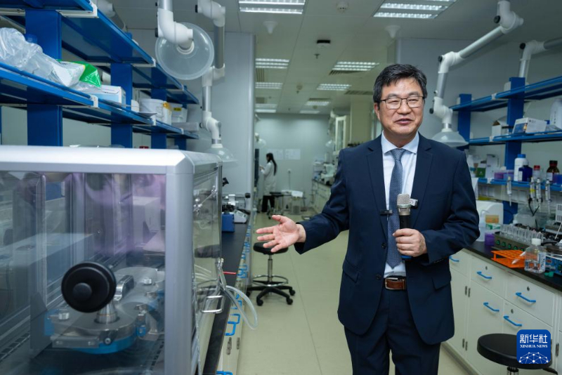 6月17日,中药质量研究国家重点实验室(澳门大学)主任、澳门大学中华医药研究院院长陈新介绍实验室情况。新华社记者 张金加 摄
