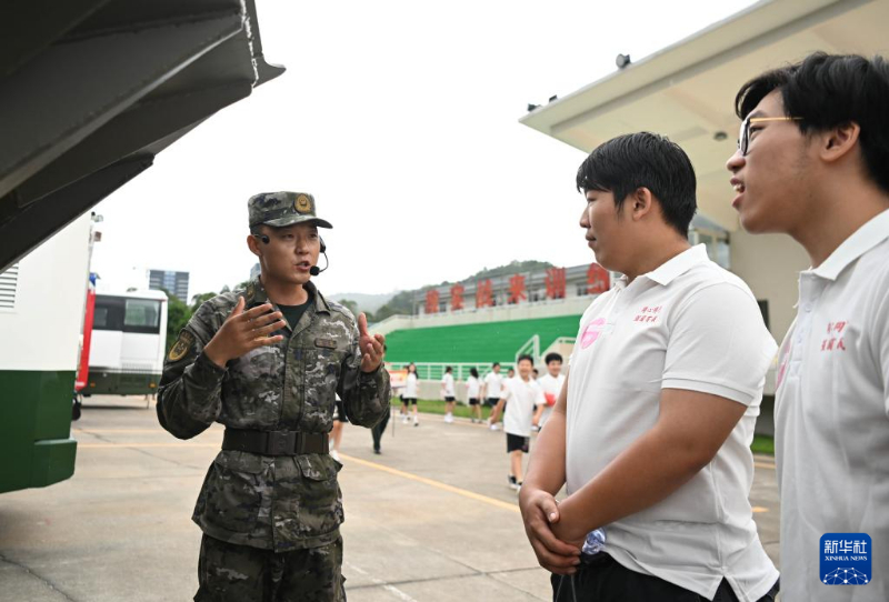 9月22日,港澳青少年听取军事车辆装备讲解。新华社记者 邓华 摄