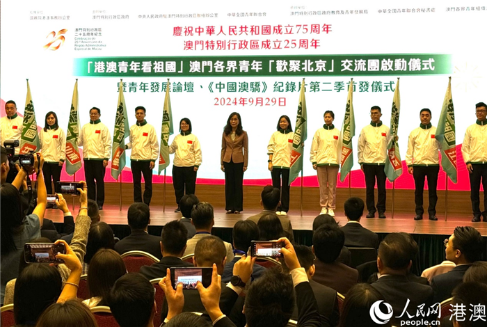 “港澳青年看祖国”澳门各界青年“欢聚北京”交流团启动仪式9月29日举行,澳门特区社会文化司司长欧阳瑜出席致辞,并为参与活动的澳门青年交流团代表授旗。