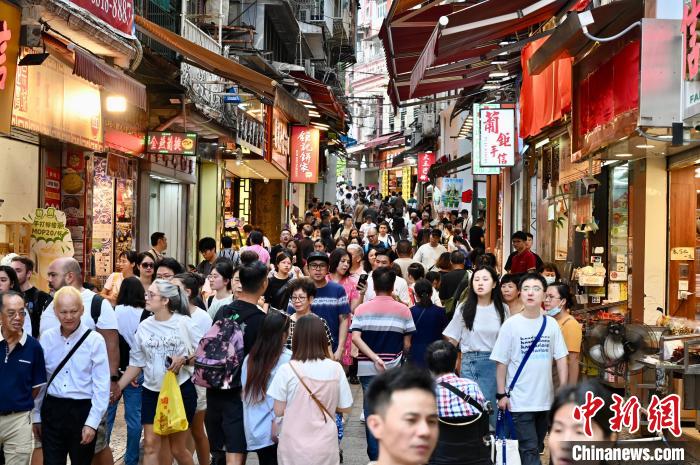 图为2024年6月,澳门大三巴牌坊一带游人如织。(资料图) 中新社记者 李志华 摄