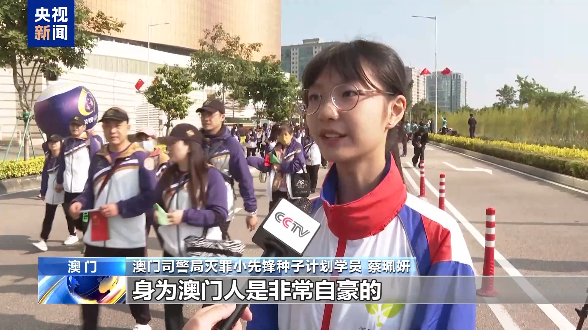 澳门司警局灭罪小先锋种子计划学员 蔡珮妍:今年是澳门回归25周年,身为澳门人是非常自豪的,也很幸运可以见证澳门的繁荣与稳定。今天我参加这个活动是非常有意义的,我可以尽自己一些小小的力量,帮助更多的人。