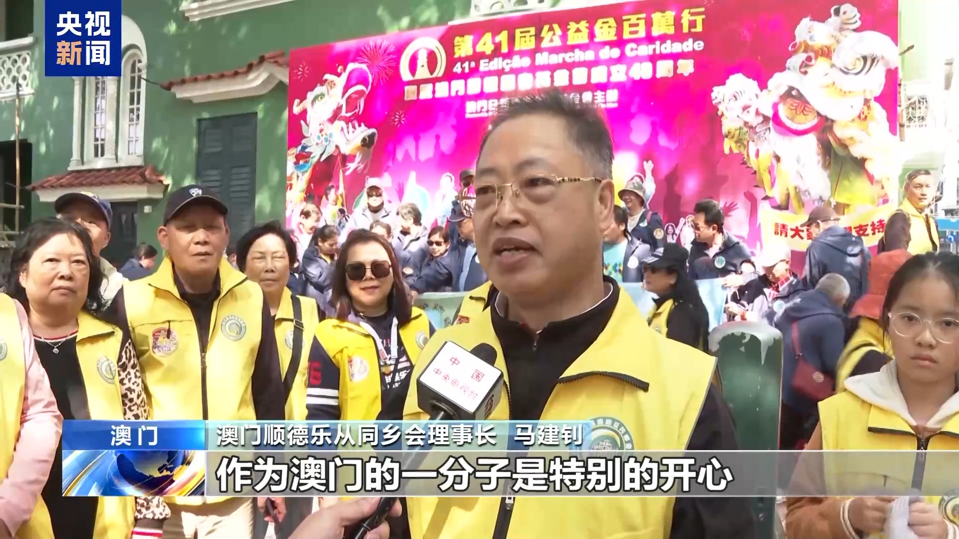 总台记者 肖中仁:这里是澳门的孙逸仙大马路,每年12月第二个星期天,对于澳门各界人士来说是一个齐聚一堂,用行动庆祝澳门回归祖国,“为公益 向前行”,表达祝福和爱心的日子。