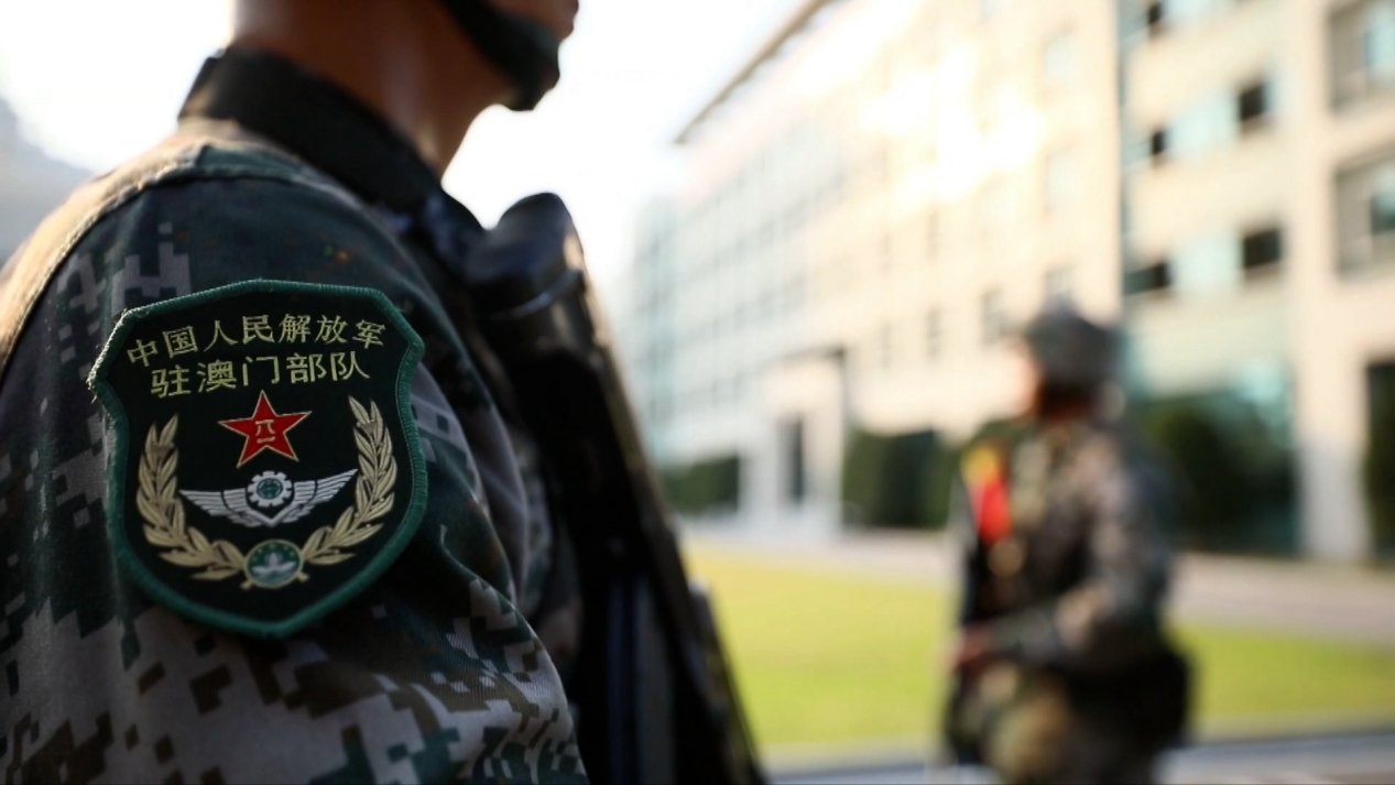 驻澳门部队军装臂章上绣着一朵莲花,战士甘奇说:“在臂章上,莲花被橄榄枝环抱,象征着我们驻澳门部队永远守护着澳门的繁荣稳定。”