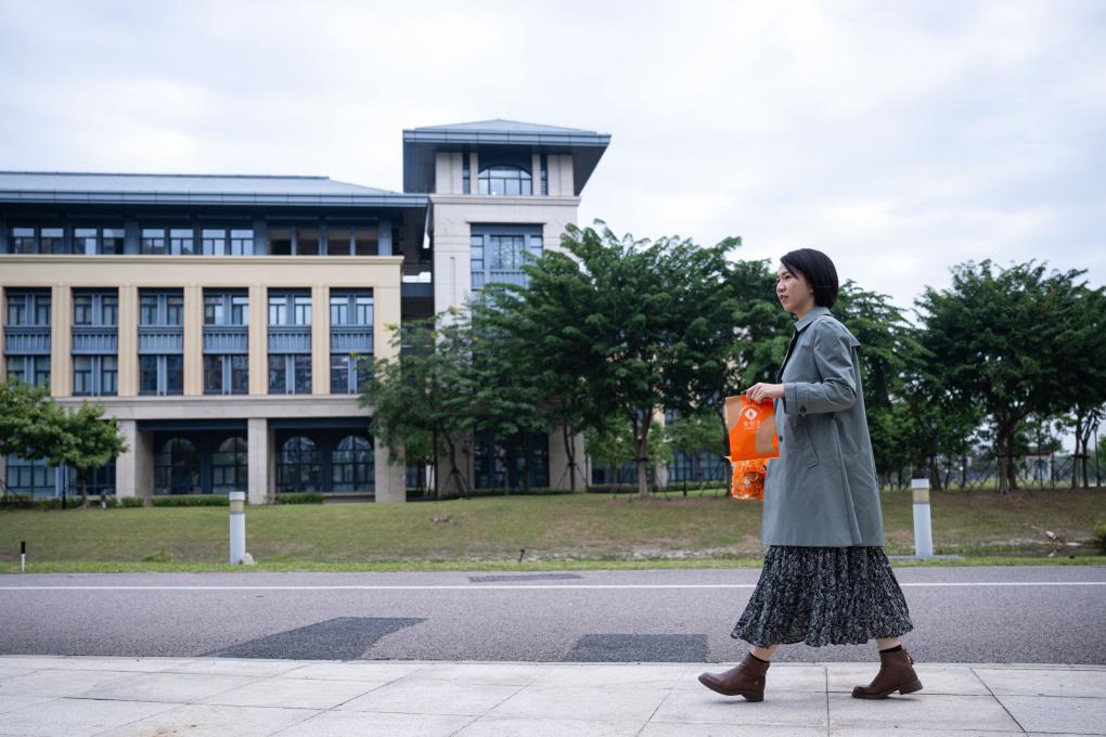12月11日,黄滋才的妻子苏柏静在澳门大学横琴校区内。