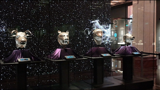 十二兽首,原是圆明园西洋楼海晏堂前的水力钟喷泉部件,是中西方文化的完美交融。从工作人员的介绍中,便可见其艺术性。