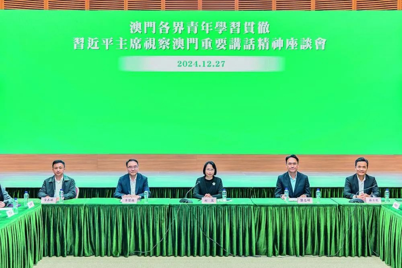 澳门各界青年组织活动筹备委员会12月27日晚七时在澳门科学馆会议厅举办“澳门各界青年学习贯彻习近平主席视察澳门重要讲话精神座谈会”。澳门特别行政区政府社会文化司司长柯岚,教青局局长龚志明、副局长黄嘉祺,以及澳门青年社团和青年代表近二百人出席。澳门各界青年组织活动筹备委员会主席、澳门青年联合会会长罗奕龙主持。