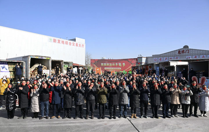 2023年1月18日,北京新发地农产品批发市场留守的商户和采购年货的群众同习近平总书记视频连线。