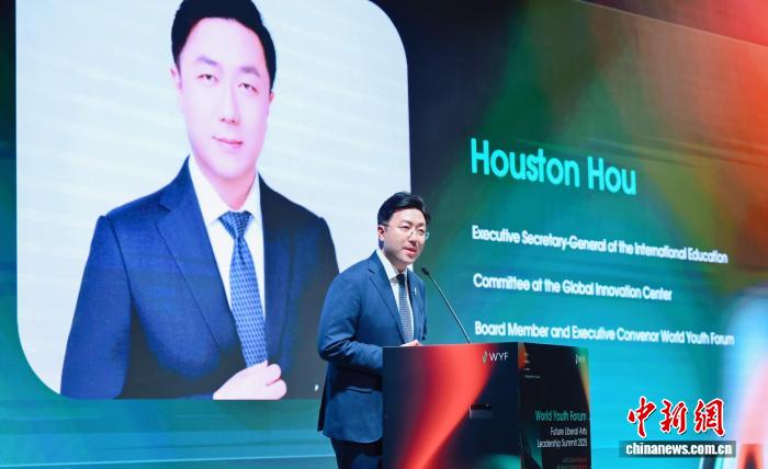 8月12日,世界青年论坛未来博雅领袖峰会在澳门开幕。图为全球创新中心国际教育委员会执行秘书长、WYF理事兼执行召集人侯昊发表演讲。
