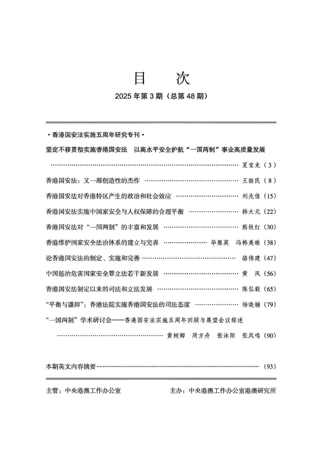 《港澳研究》由中共中央港澳工作办公室主管、中央港澳工作办公室港澳研究所主办,是我国港澳研究领域唯一面向海内外公开发行的综合性学术期刊。期刊围绕学习贯彻习近平总书记关于港澳工作重要论述、港澳回归周年庆等组织专栏文章,并常设“一国两制”理论研究、政法论坛、经济研究、社会研究、历史文化、粤港澳大湾区研究等栏目。《港澳研究》编辑部热诚欢迎海内外学者朋友惠赐佳稿,我们将进一步提升刊物服务质量,共同推进港澳研究繁荣发展。