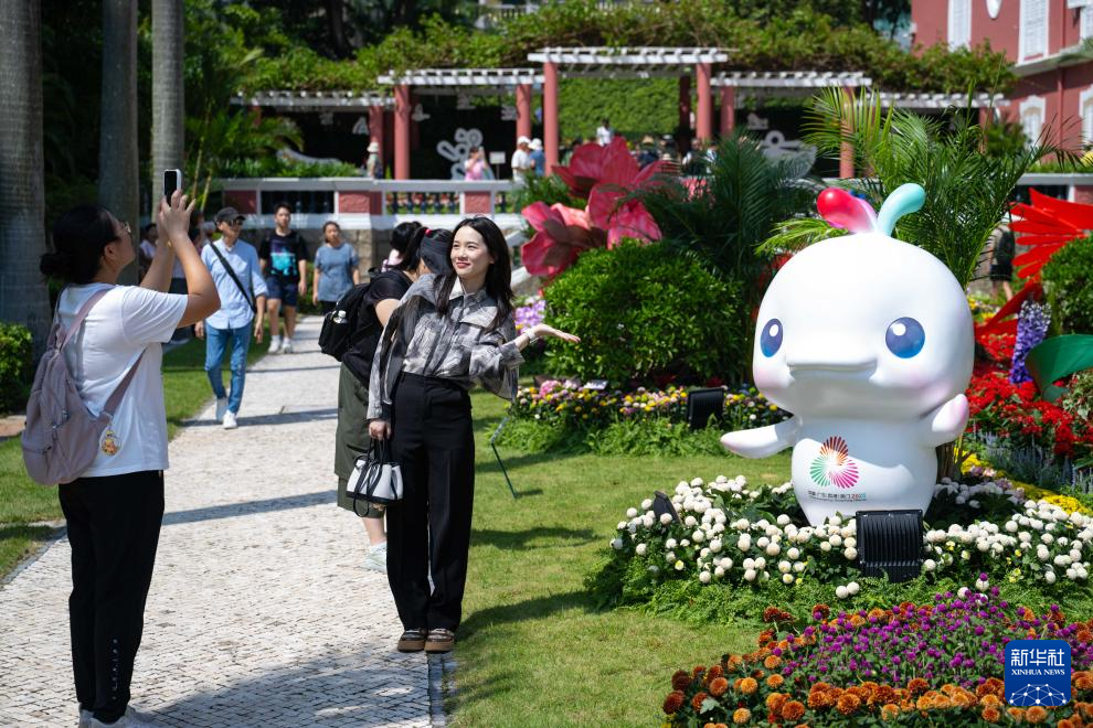 公众还可漫步花园,欣赏大型花卉展。花卉展以十五运会为主题,选用主题花乒乓菊等超过20种花卉植物作布置,加之活泼可爱的十五运会吉祥物“喜洋洋”“乐融融”,营造活力与喜庆气氛。