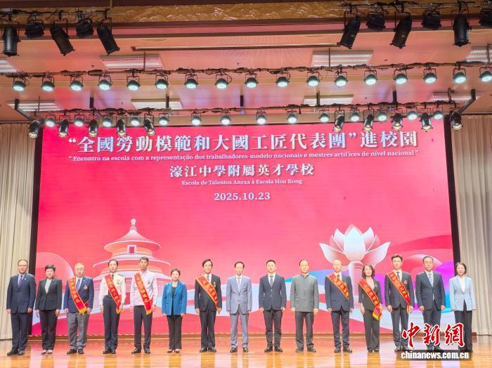 10月23日,中华全国总工会组织的“全国劳动模范和大国工匠代表团”抵达澳门展开访问行程。图为当日下午,代表团走进澳门濠江中学附属英才学校,与师生面对面互动。中新网记者 郑嘉伟 摄