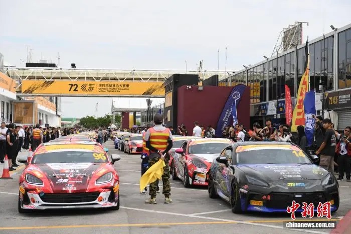11月13日,第72届澳门格兰披治大赛车开赛。当日的赛程包括多个赛事的练习赛以及国际汽联FR世界杯、澳门路车挑战赛两项赛事的排位赛。图为参加练习赛的赛车准备出发。中新网记者 郑嘉伟 摄