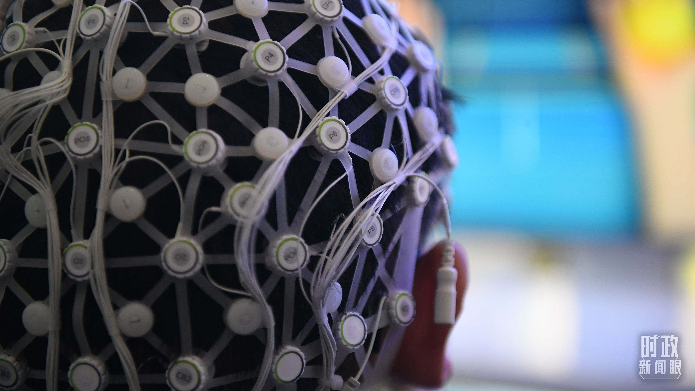 2026年1月24日,安徽省脑机接口创新发展大会现场一位穿戴脑机接口设备的体验者。(图/视觉中国)