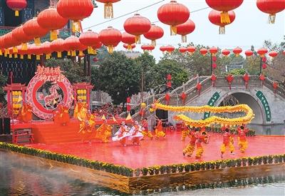 近日,广州宝墨园新春岭南醒狮民俗文化节在广东广州举办。活动将舞龙与非遗布马舞创新融合,生动演绎马年“龙马精神”的风采。图为活动现场。王美燕摄(人民视觉)