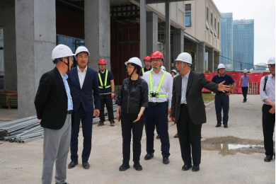 图为柯岚考察澳琴国际教育(大学)城第一期项目改造工程。