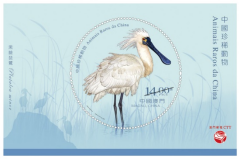 图为“中国珍稀动物”黑脸琵鹭小型张。