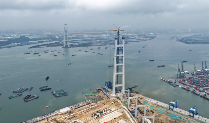 珠江之畔,狮子洋通道项目建设现场一派繁忙景象。作为粤港澳大湾区超级工程,狮子洋通道建成后将成为珠江口东西两岸融合发展新通道,加快大湾区交通基础设施“硬联通”。