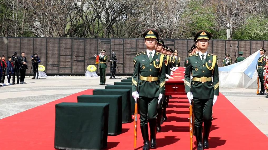 4月23日上午,第十三批在韩中国人民志愿军烈士遗骸安葬仪式在沈阳抗美援朝烈士陵园举行。12位在抗美援朝战争中英勇牺牲的志愿军烈士英灵回到中华大地安息。