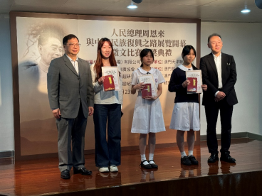 主题征文比赛启动以来备受澳门社会关注,参赛者以文字抒发对人民总理周恩来的崇敬、对中华民族复兴历程的感悟,以及对澳门与祖国同呼吸、共命运的深刻理解。参赛作品主题鲜明、情感真挚,充分展现出澳门青年一代的家国情怀与责任担当。经专业评审严谨评选,最终评出各类优秀奖项,现场嘉宾为获奖者颁奖。